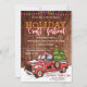 Designed for our Christmas Holiday collection, this customizable Invitation features wood background, red truck, christmas trees, snowfall, string lights, green and red fonts along with customizable sections for celebration details. Matching items available.