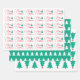 Three cute Merry Christmas designs: 1. Merry Christmas message in red calligraphy with a green christmas tree topped by a red star. 2. White christmas trees with red stars in a repeating pattern. 3. Green christmas trees with red stars on white, in alternating directions.
