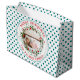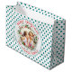 Merry Christmas floral wreath with teal blue polka dot pattern photo large gift bag. Personalize with your own photo and text.