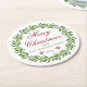 Beautiful greenery wreath and berries "Merry Christmas" customizable paper coasters.
