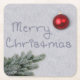 "Merry Christmas" written in the snow with a decorative red Christmas tree ball and a snowy fir branch.
