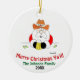 This fun Christmas ornament sends a warm Texas Santa greeting to all with a friendly "Merry Christmas Ya'll!"