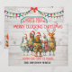 This whimsical and funny Christmas card will be a favourite of your friends and family! There are 5 chickens on the front wearing Christmas lights wrapped around them, Santa Hats and one with Reindeer antlers. Background is a rustic old fence. Typography reads Merry Clucking Christmas From our coop to yours, then you personalize it with your family name or first names. The reverse side of the card is a funny little surprise. There's a sign that says North Pole Milk & Cookie Co. Baking Fresh Daily Since 1847. Above are Christmas lights and a bow draped across the top. At the bottom is a crazed chicken saying "Squawk! I forgot to take the cookies out of the oven!" A fun card for chicken lovers, chicken farmers, or just someone looking for a non traditional, funny Christmas card.