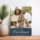 Festive holiday photo card features four of your favourite images arranged in a collage layout. "Merry Christmas" appears beneath in white lettering on a rich navy blue background. Personalize with your names and the year.