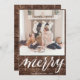 Send customizable and personalized holiday greetings to friends, colleagues and family in simple, chic, elegant and modern photo design festive, natural minimalist style cards! A beautiful calligraphy of " merry " frames on bottom of your photo in front. Below the calligraphy features your custom greeting message from your family name in modern typography. Reverse to reveal a beautiful golden brown trees on rustic dark brown wood background.