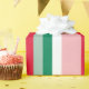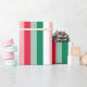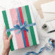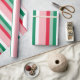 This festive Christmas wrapping paper features pink, red, green, and mint stripes