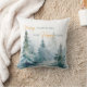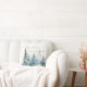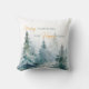 Watercolor winter trees in shades of green paired with script and modern typography throw pillow.
