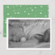 Personalized Christmas cards for family featuring the words "merry everything", on cute and delicate handwritten like white typeface, and a simple white border framing a black and white photo template of a sleeping baby. The back of these cute Christmas flat photo cards feature a fun pattern, with green and white confetti.