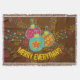 Pretty and colourful Merry Everything holiday throw features a vintage brown background with lots of different snowflake patterns of pink, aqua blue, orange, and yellow, three big holiday tree ball ornaments, and yellow text that reads Merry Everything! This beautiful Christmas holiday throw makes a great gift or get one for yourself to enjoy for years to come!