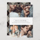 The phrase "merry everything" in simple black text inside of a rectangle outline featuring three of your favorite photos in a collage with a black, red, and white plaid pattern on the back. You may also customize greeting, if desired.