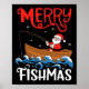 Merry Fishmas Funny Christmas Santa Claus Fishing Poster