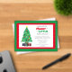 Christmas themed merry little baby shower invitation. Invite features red and green holiday theme with grey snowflakes, Christmas tree and presents.