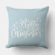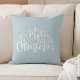 Cute light blue pillow in country farmhouse style. "Merry Christmas" quote text written as calligraphy wordart. Find more matching items in my Collection "Christmas in red, blue and white"