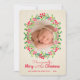 This charming holiday photo card features modern typography and a delicate watercolor painting of holly leaves and berries oval wreath around your photo on a simple pale ivory stripe background. CHANGE the saying, the fonts and font colour. **ADD more photos or text on the back with the Customize further link. Select Matte for heaviest paper.