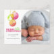 Personalize these invitations with your baby’s details and a sweet photo, framed in a stylish arch design. The reverse side showcases a bold pink backdrop, adding an extra festive touch to this joyful design.