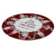 "Merry Little Christmas Red Grey Gnomes Santa Hats Cutting Board." Whimsical Christmas Gnomes with signs, lanterns, holly and inspirational messages encircle this round cake stand to add a touch of whimsey for your Christmas party or holiday guests. Script typography text reads, "Have yourself a merry little Christmas!" Created in watercolor by internationally acclaimed and licensed artist, Audrey Jeanne Roberts, copyright.