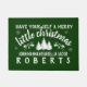 Pretty winter farmhouse look - elegant dark forest green faux burlap - classic "have yourself a merry little christmas" text with pines, holly, snowflakes, and your family name