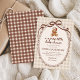 Celebrate the mom to be with this Merry Little Teddy Bear Winter Christmas Baby Shower Invitation. Featuring a sweet watercolor teddy bear in a Santa hat, soft neutral brown gingham background, and festive hand drawn bow accents, this cozy and whimsical holiday design is perfect for a winter or Christmas themed baby shower. This editable template makes it simple to personalize and share your joyful seasonal celebration.