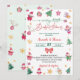 cute baby shower invite with santa clauses, pine trees and other ornaments, great for gender neutral baby shower parties
