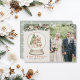 This cute "merry & married" Christmas holiday photo card features a snow globe with a mouse couple kissing under the mistletoe in front of the Christmas tree. The reverse side features a sage green background with snowflake patterns. Personalize it for your needs. You can find matching products at my store.