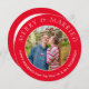 Your first Christmas as Mr and Mrs deserves a special mention with your holiday greetings and this circular design will do the job in unusual style! Change the sample picture with your favourite photo of you both, which is centred on the front. Your photo will automatically fill to the circular shape, so for best results choose a picture where the main subject area is in the centre. There's a single white line border around the image and a festive red background which can be changed to another colour if you wish via the customise further option. Merry & Married is curved above and your greeting and names beneath, and on the back your festive message and names. All the text can be easily personalised. You may also consider our handy coordinating individual name and address stickers in this collection to make light work of your holiday mailings.