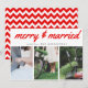 Merry & Married Red Typography Three Photo Holiday