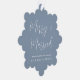 Modern dusty blue holiday greeting card and wedding announcement that is also a keepsake tree ornament. The front features "Merry and Married" in a chic white script and your married name in simple white typography. Your favourite wedding day photo fills the back of the card.