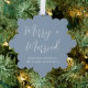 Merry Married Wedding Photo Dusty Blue Christmas Ornament Card