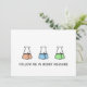 Three Erlenmeyer flasks with different coloured solutions make this holiday card fit for a chemist. There are three matching baubles on the back. Text on front reads "Follow me in Merry Measure" - editable text on back reads "Happy Holidays!" Teachers and scientists will appreciate this sentiment as they raise their glassware to toast the Christmas season.