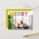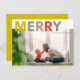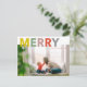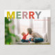This photo holiday postcard features multi-colour MERRY on the top. You can replace the placeholder picture with your own holiday photo.