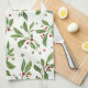 Merry Mistletoe Red Berry Watercolor Christmas Kitchen Towel