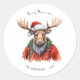 Merry Moose-mas Personalized Watercolor Christmas Classic Round Sticker