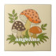 A fun design with funky mushrooms. A throwback design with avocado green, brown and orange shades.