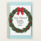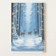 A stunning Christmas-themed planner design with a beautifully detailed front cover featuring a festive wreath adorned with holly, berries, and a red bow, and a peaceful snowy forest scene with deer and twinkling lights on the back cover. Perfect for staying organized during the holiday season.