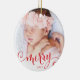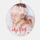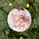 MERRY PHOTO family fun calligraphy overlay red Ceramic Ornament