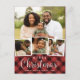 Festive holiday photo card features four of your favorite images arranged in a collage layout. "Merry Christmas" appears beneath in white lettering on a rustic handpainted buffalo plaid background in red and black. Personalize with your names, and add an additional photo and a personal message to the back, along with your return address.