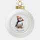 Adorn your Christmas tree with a touch of personalized winter charm with our "Merry Puffin" ceramic ball ornament. This delightful ornament features the adorable watercolor illustration of a puffin, bundled up for winter in a cozy red and white striped beanie topped with a fluffy pompom. This charming seabird brings a whimsical and joyful touch to your holiday decorations.