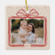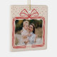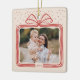 Merry Script Elegant Christmas Bow Photo Keepsake Ceramic Ornament