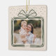 Merry Script Elegant Christmas Bow Photo Keepsake Ceramic Ornament