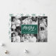Elegant, festive holiday card design that features 6 of your favourite photos. The word "Merry" is displayed in the centre of the card in a white, hand-lettered script against a green background. Personalize the cute holiday photo collage card with your names, the year, or business name. The unique holiday card reverses to a green and white snowflake design.