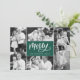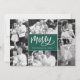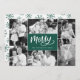 Merry Script Green Christmas 6 Photo Collage Holiday Card