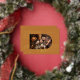 Merry Script Modern Stripe Photo Arch Frame Yellow Foil Holiday Card