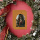 Merry Script Modern Stripe Photo Arch Frame Yellow Foil Holiday Card