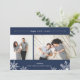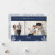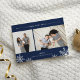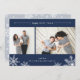 Elegant and modern holiday photo card features two favorite photos aligned side by side, with "Happy New Year" at the top in white italic and block typography. Personalize with your custom greeting and name at the bottom, accented by four white snowflake illustrations. A rich navy blue background adds classic elegance to your holiday greeting. Card reverses to a snowfall pattern in chic gray.