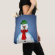 The Merry Snowman with his green hat and red scarf on a Christmas Tote Bag.