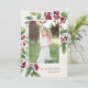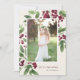 Send holiday greetings to friends and family in chic style with our elegant photo cards. Graceful sprigs of painted watercolor foliage and deep red berries frame your vertical or portrait oriented photo, with your custom greeting (shown with "joy to the world") and your family name(s) tucked into the lower right corner. Cards reverse to reveal a matching winter botanical pattern.