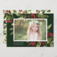 Send holiday greetings to friends and family in chic style with our elegant photo cards. Graceful sprigs of painted watercolor foliage and deep red berries frame your photo against a hunter green background, with your custom greeting (shown with "joy to the world") and your family name(s) tucked into the lower left corner. Cards reverse to reveal a matching winter botanical pattern.