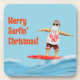 Merry Surfin' Christmas Santa on Surfboard Coaster