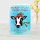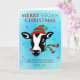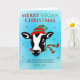 This "Merry Vegan Christmas" card features a cow in a christmas spirit.