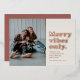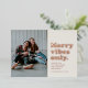Merry vibes only this holiday season! Send a fun retro-style holiday card with this one vertical photo design. The throwback type reads "merry vibes only" in foil and it also has room for a custom message, name and year. The coordinating back has a distressed texture to complete the vintage look.
